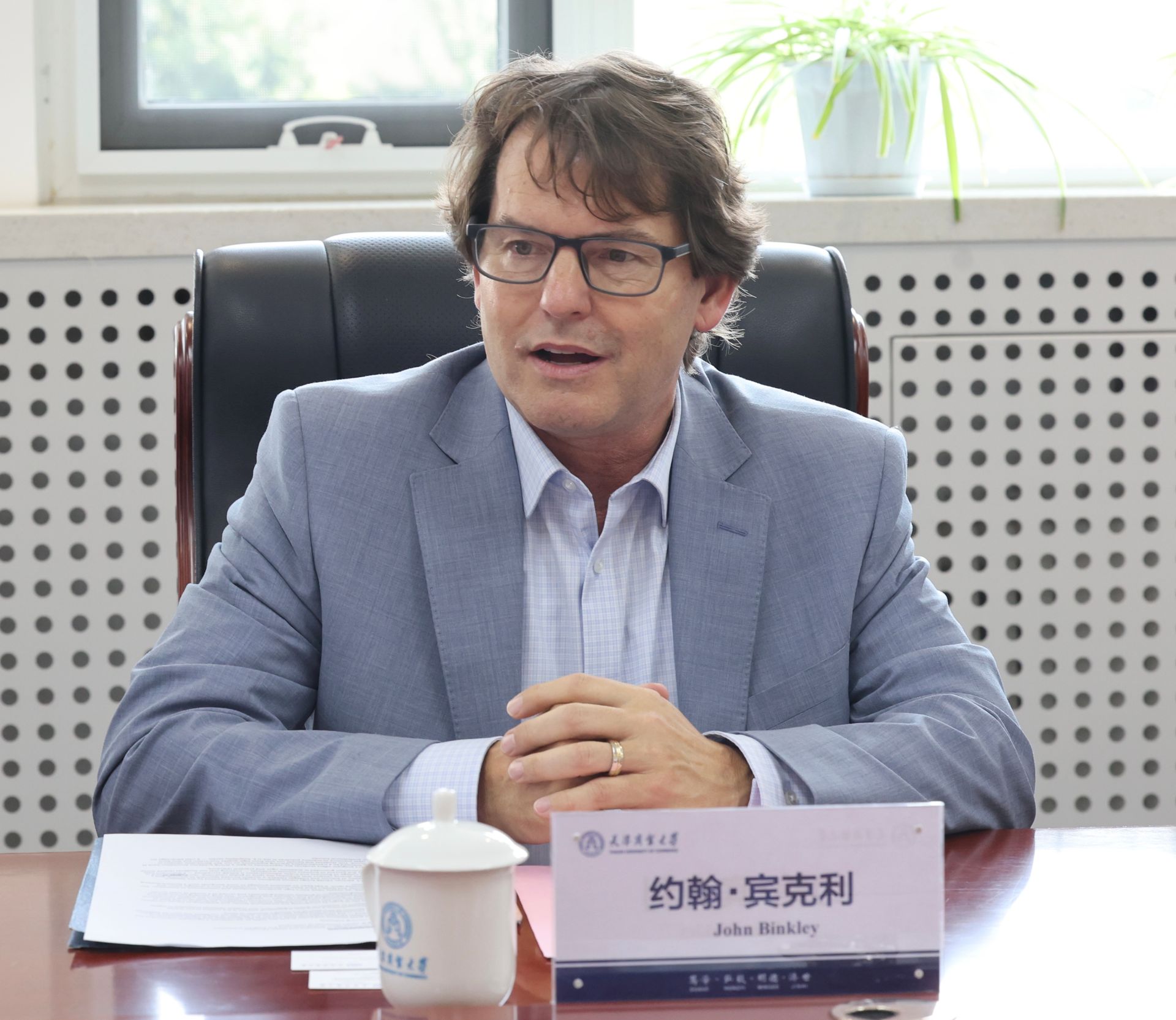 张亚对约翰・宾克利助理副校长一行来访表示热烈欢迎,他简要回顾了两校达成合作意向并签署《合作办学协议书》以来,双方所做的相关项目申报工作,以及目前取得的进展情况。他表示非常期待此次来访能够让双方更加深入地了解彼此的优势和需求,进一步完善项目合作细节、强化合作项目宣传,在此基础上,逐步拓展两校合作的领域和范围,让两校更多师生分享国际化教育的成果。