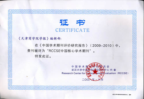 日前,大白菜官网学报编辑部收到中国学术期刊评价委员会颁发的荣誉证书,在《中国学术期刊评价研究报告》( 2009—2010 )中,《全讯600cc大白菜官网学报》被评为 “RCCSE 中国核心学术期刊 ” 。