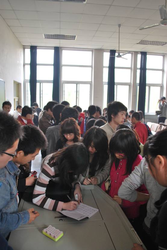 在募捐现场,学生会向艺术设计 08 级同学做了情况简报,同学们纷纷解囊相助,宽慰家长,希望能尽自己的微薄之力帮助尹丽同学摆脱病魔的困扰。尹丽父母被热烈的场面感动的热泪盈眶,气氛非常感人。